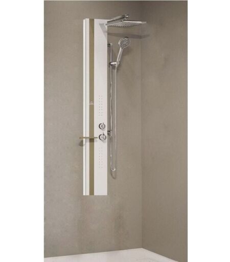 Colonne de douche hydromassante NOVELLINI LINE 2 blanc 150cmColonne de douche avec mitigeur mécanique ou thermostatique; montage facile de face et suspendu. Produit en aluminium finition de couleur blanc mat, noir, argent ou silver.Équipement: douchette à main, flexible et barre de douche avec curseur, douche de tête carrée zénithale et étagère porte objet. Les atouts :Esthétique originale du designer Marco PelliciDouche zénithale et douchette à mainÉtagère porte objetsHydromassage dorsal Les caractéristiques :Couleur: blanc / colonne blanc mat: avec bande grise ou argile tortoraProfondeur: 22 cmHauteur: 150cmCorps en aluminiumRobinetterie en façadeHydromassage dorsalMatière: aluminium Options :- Couleurs disponibles:colonne blanc mat: avec bande grise ou argile tortoracolonne noir mat: avec bande argent ou argile tortoracolonne argent: avec bande noire colonne silver: avec bande noire ou blanche- Mitigeur mécanique ou thermostatique- Hauteurs disponibles: 150 cm (LINE 2) et 215 cm ...