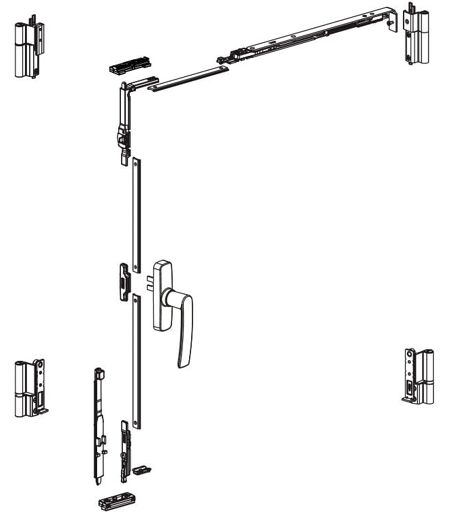 Kit oscillo-battant Galicube 2 v Fapim crémone Gea - compas moyen 562 à 1200 mm - noir RAL9005 - 1331GF37