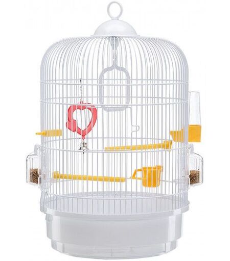 Cette cage ronde pour Canaris et petits Oiseaux, proposée par la société Ferplast est très esthétique.Elle est équipée d'un bac en plastique qui permet le nettoyage de la cage sans l'ouvrir. < div> Elle est équipée de nombreux accessoires :< div>- 1 Balançoire< div>- 2 Perchoirs < div>- 1 Écuelle< div>- 1 Pince à aliments< div>- 2 mangeoires (à remplir par l'extérieur de la cage)< div>- 1 abreuvoir< div>- 1 jouet clochette< div> < div>Diam. : 32.5 X H 49 cm < div>< div> ...