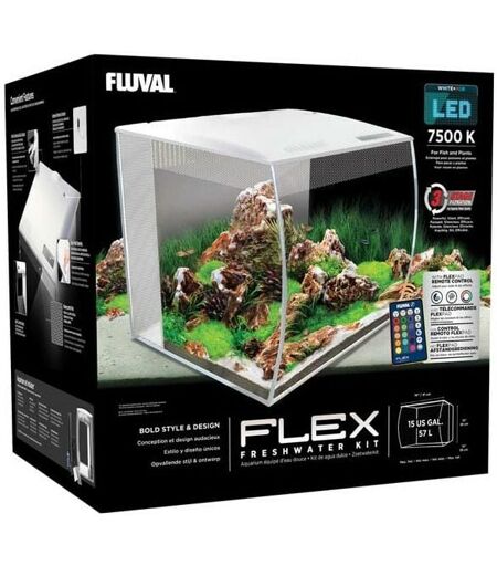La nouvelle s_rie d'aquariums Nano Fluval Flex propose un style contemporain avec le badge de cristal avant Badge. L'aquarium est _quip_ d'un puissant systЏme de filtration љ 3 _tages et d'une t_l_commande infrarouge qui vous permet de s_lectionner entre diff_rentes couleurs et effets sp_ciaux. Il a de puissantes LED avec une temp_rature de couleur de 7500K. Le Flex Flex est un kit d'aquarium comprenant une filtration љ 3 _tages, un _clairage љ LED avec t_l_commande et un panneau avant Connox qui lui donne une apparence moderne et panoramique. Disponible en 34 et 57 litres, ces aquariums conservent tous les _quipements techniques cach_s sur le dos et hors de la vue pour une finition ordonn_e et naturelle. De plus, la couverture sup_rieure oќ se trouve l'_clairage LED, nous avons inclus une pratique d'ouverture pour nourrir les habitants de l'aquarium. Le bord sup_rieur a un motif pour indiquer le niveau de la surface de l'eau et cacher les marques d'eau pouvant ђtre produites par ...