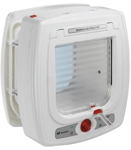 Chatiere plastique fonctionnant avec piles - Indicateur piles déchargées - Porte ouvrante quand chat a proximité - Possibilité d'enregistrer jusqu'a 32 puces standard ISO 11784 (utilisation partout dans le monde) - Systeme Wind Stopper innovant pour empecher les courants d'air - Livrée avec collier et puce - Réglages divers. ...