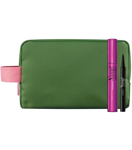 Le mascara de Pupa dans sa version Extender. Un eyeliner feutre au trait intense extra black. Vamp! Lash Extender Vamp! Lash Extender est le mascara de Pupa qui, en donnant un volume intense, AMPLIFIE, REHAUSSE et ALLONGE l’éventail des cils. Le volume s’unit à une surprenante extension tridimensionnelle pour un regard plus ouvert et des cils liftés à l’infini. Sa texture généreuse et structurée garantit le contrôle et l’adhérence nécessaire pour « tirer » les cils et les allonger de manière incroyable. L’applicateur en silicone, grâce à sa forme conique et à ses poils épais et fuselés, modèle et lifte les cils en 3 dimensions. 93 % regard plus ouvert* 96 % cils rehaussés* 90 % cils plus longs* 96 % longue tenue* *Test d’auto-évaluation. 30 sujets. Produit testé sous contrôle clinique et ophtalmologique. Adapté pour les yeux sensibles et les porteurs de lentilles de contact Sans parabènes Made in Italy .47 fl oz –14 ml 6M Vamp! Stylo Liner 100 – Extra Black Est l’Eyeliner feutre de Pupa qui s’applique parfaitement et sans imprécisions d’un simple geste. Son trait noir intense et brillant et sa pointe feutre permettent de réaliser un maquillage des yeux graphique et défini, même pour les moins expertes. Sa texture, légère et confortable, est longue tenue. À faible risque d’allergie Testé sous contrôle ophtalmologique Sans parabènes Fabriqué en Italie 6M 0.051 fl oz – 1,5 ml Trousse de toilette – grande taille, pratique, parfaite comme trousse de toilette de voyage ...