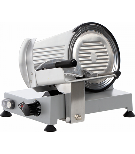 Certifications CE domestique, Matériau de la lame de coupe acier trempé, Diamètre lame de coupe 220mm, Matériau de la base aluminium vernis, Matériau de la voile aluminium anodisé, Pays de fabrication Italie, Matériau du couvre-lame aluminium galvanisé, Conseillée pour: Charcuteries tendres, Conseillée pour: Charcuteries affinées, Conseillée pour: Viandes, Conseillée pour: Pain de mie, Conseillée pour: Fromages semi-affinés, Conseillée pour: Légumes, Activation électrique 230 V, Type de moteur électrique monophasé, Puissance nominale (W) 160W, Type de transmission à courroie, Plateau couvre-lame amovible par poignée de déplacement, Matériau du chariot aluminium, Affûteur - amovible ...