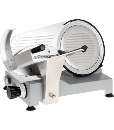 Certifications CE domestique, Matériau de la lame de coupe acier trempé, Diamètre lame de coupe 250mm, Matériau de la base aluminium vernis, Matériau de la voile aluminium anodisé, Pays de fabrication Italie, Matériau du couvre-lame aluminium galvanisé, Conseillée pour: Charcuteries tendres, Conseillée pour: Charcuteries affinées, Conseillée pour: Viandes, Conseillée pour: Pain de mie, Conseillée pour: Fromages semi-affinés, Conseillée pour: Légumes, Activation électrique 230 V, Type de moteur électrique monophasé, Puissance nominale (W) 180W, Couplage moteur/lame , Type de transmission à courroie, Plateau couvre-lame amovible par poignée de déplacement, Matériau du chariot aluminium, Affûteur - amovible ...