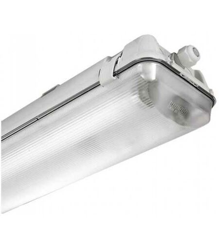 Plafonnier à armature étanche avec corps moulé par injection en polycarbonate gris RAL7035, incassable et auto-extinguible V2, à haute résistance mécanique grâce à la structure renforcée par des nervures internes, et douille en polycarbonate blanc et contacts en bronze phosphoreux avec douille G13. Le diffuseur est moulé par injection en polycarbonate transparent prismatique à l'intérieur pour un meilleur contrôle de la lumière, auto-extinguible V2, stabilisé contre les rayons UV et finition lisse externe. Le réflecteur est en acier laminé à froid, galvanisé à chaud contre la fissuration, revêtu d'un primaire époxy 7/8 micron, peinture anti-jaunissement stabilisée UV en polyester blanc brillant, épaisseur 20 microns. Fourni avec fusible de protection 3,15 A ; presse-étoupe en nylon fv diam.1/2 pouce gaz; joint en matériau écologique en polyuréthane expansé; fv crochets de verrouillage en nylon W total 112, Lumen-K-CRI FL 2x58 5200lm-4000K-Ra 1b. Modèle 921 Hydro T8 EL, marque Disano ...