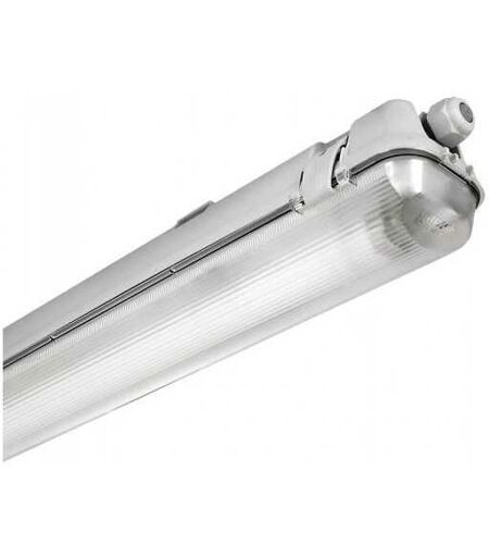 Plafonnier à armature étanche avec corps moulé par injection en polycarbonate gris RAL7035, incassable et auto-extinguible V2, à haute résistance mécanique grâce à la structure renforcée par des nervures internes, et douille en polycarbonate blanc et contacts en bronze phosphoreux avec douille G13. Le diffuseur est moulé par injection en polycarbonate transparent prismatique à l'intérieur pour un meilleur contrôle de la lumière, auto-extinguible V2, stabilisé contre les rayons UV et finition lisse externe. Le réflecteur est en acier laminé à froid, galvanisé à chaud contre la fissuration, revêtu d'un primaire époxy 7/8 micron, peinture anti-jaunissement stabilisée UV en polyester blanc brillant, épaisseur 20 microns. Fourni avec fusible de protection 3,15 A ; presse-étoupe en nylon fv diam.1/2 pouce gaz; joint en matériau écologique en polyuréthane expansé; crochets de verrouillage en nylon fv W total 37, Lumen-K-CRI FL 1x36 3350lm-4000K-Ra 1b. Modèle 921 Hydro T8 EL, marque Disano ...