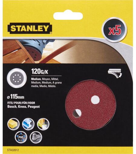 Sangles Velcro STA 32012 pour ponceuses orbitales aleatoires. (X32012) 5 disques. DiamEtre 115 mm Grain 120 ...