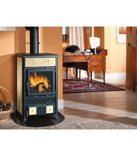 Poele a' bois La Nordica extraflame en fonte Rossella R1 liberty parchemin 11,0 kw pour 252 m chauffe'