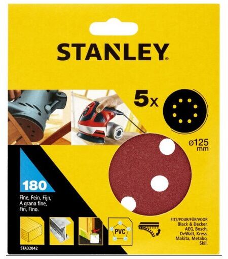 Stanley STA32042 cf 5 dischi da 125 mm a strappo grana 180 per levigatrici roto-orbitali ...