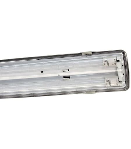 Fabriqué en polycarbonate étanche. Durée de vie 30000 heures. Degré de protection IP 65. Puissance 2x36 W. Longueur 1264 mm. Intensité lumineuse 3400 lm. ...