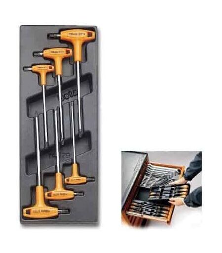 Clé mâle pour vis TORX® à poignée en T haute performance en plateau thermoformé rigide. Détail de la composition: T10 - T15 - T20 - T25 - T27 et T30 Contenu du colis : ...