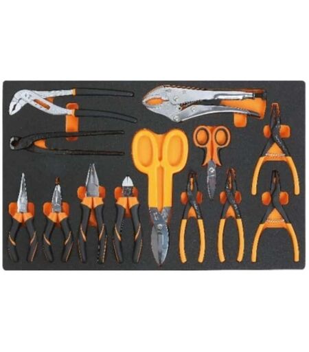Ensemble d'outils d'électricien de 13 pièces de la série M130 dans un plateau thermoformé souple de Beta Tools®. Ce produit de qualité supérieure est fabriqué de manière experte dans le respect des normes strictes de l'industrie pour offrir la fusion d'un design bien équilibré et d'un haut niveau de savoir-faire. Fabriqué à partir de matériaux de pointe à l'aide d'équipements de pointe, il garantit une fiabilité et une valeur durables. Ce produit se distingue par une assurance qualité totale, inégalée par quiconque. Contenu du colis : 1 Plateau thermoformé souple M130 1 Pince pour circlips intérieurs à becs droits Ø 180 mm (ref : 1032) 1 Pince pour circlips intérieurs à becs coudés Ø 170 mm (ref : 1034) 1 Pince pour circlips extérieurs à becs droits Ø 175 mm (ref : 1036) 1 Pince pour circlips extérieurs à becs coudés Ø 175 mm (ref : 1038) 1 Pince multiprise entrepassée 250 mm (ref : 1048) 1 Pince - étau à becs droits 240 mm (ref : 1052) 1 Pince coupante diagonale 160 mm (ref : 1082BM) ...