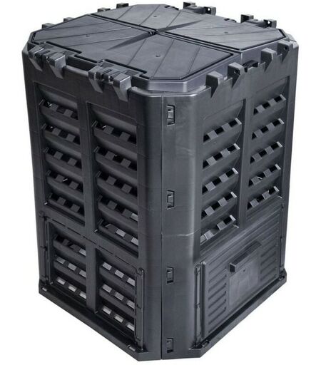 Le composteur de jardin KOMPOBOX 360 L en matière plastique recyclable vous permet de recycler facilement vos déchets organiques et naturels. Le compostage des déchets en bac est idéal pour vos besoins de jardinage et de la cuisine, il vous permet de réduire le volume des déchets ménagers et du jardin et ainsi participer à la protection de l'environnement. Le compostage à domicile présente donc de nombreux avantages comme utiliser ensuite votre composte comme engrais pour vos plantations. Avec le composteur de jardin BRIXO la qualité du compost est assurée par une bonne aération due à la perforation des parois et l'aération des charnières, ainsi que la régulation de la température et une bonne protection contre les intempéries. Caractéristiques : Matière : plastique recyclable. Dimensions : 69 x 69 x H84 cm. Capacité : 360 L. Porte de chargement supérieur. Porte de déchargement latérale. Cadenassable (cadenas non fourni). Résiste aux intempéries. Montage facile. Couleur : noir. ...