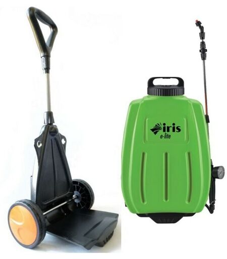 Iris Garden - Pulverisateur électrique 16L Batterie Lithium 8Ah Chariot trolley et Bretelles Chargeur + 3 buses iris