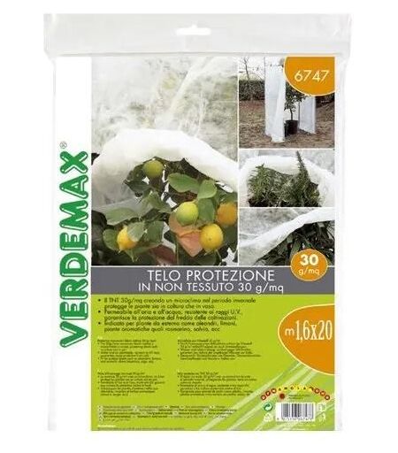 Il velo di protezione viene utilizzato per difendere le vostre piante dal freddo dell\'inverno, l\'ideale è utilizzare i veli di protezionein TNT (tessuto non tessuto) adatti a proteggere da gelate e neve piante di limone, magnolie e olivi. Caratteristiche tecniche: Specifico per limoni - olivi - magnolie etc.In Tessuto Non Tessuto pesante, 30 gr mq, per una migliore difesa dal freddo.Permeabile all\'aria e all\'acqua.Stabile ai raggi U.V..Misure Telo: m 1,6 x 20Fornito in rotoloInformazioni Aggiuntive: Il TNT 30 g/mq creando un microclima nel periodo invernale protegge le piante sia in coltura che in vasoPermeabile all'aria e all'acqua, resistente ai raggi U.V., garantisce la protezione dal freddo delle coltivazioniIndicato per piante da esterno come oleandri, limoni, piante aromatiche quali rosmarino, salvia, ecc. ...