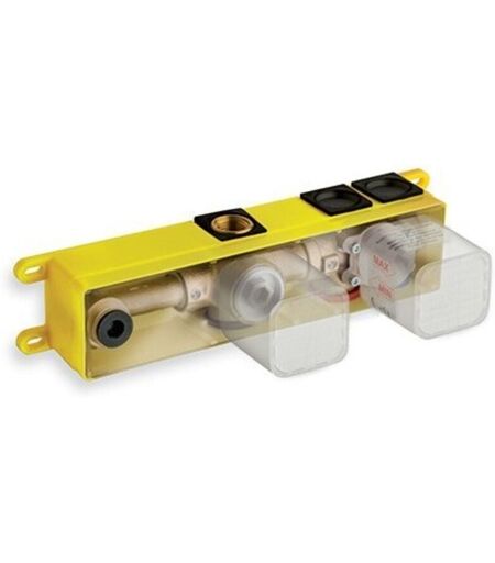 Mécanisme mitigeur corps encastré. Sortie droite - Fournisseur: ONDYNA - Reference: CS10000 - - Box universelle 2 ou 3 sorties droite - Pour mitigeur bain/douche - Robinetterie encastreé - Mécanisme seul 2 ou 3 sorties - Cartouche Life Time - Coloris: jaune Dimensions et Poids : - Longueur: 285 mm - Profondeur: 55 mm - Poids: 1,94 kg Garantie : 8 ans contre vices de fabrication, hors pièces d'usure. ...