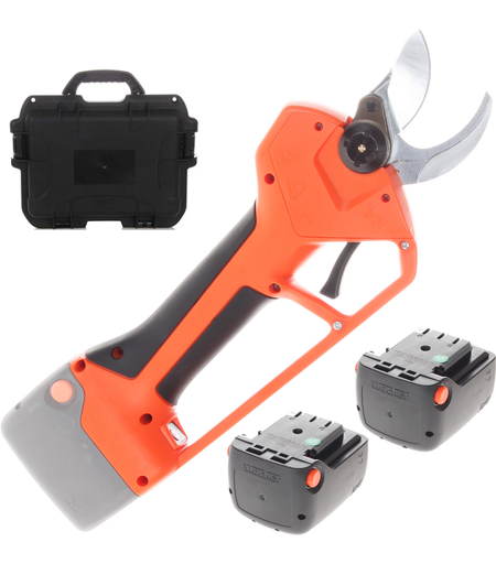 Poids sécateur 1000g, Pays de fabrication Chine, Batterie incorporée, Utilisation manuelle, Équipement avec batterie, Type de moteur à batterie, Type de batterie lithium (Li-Ion), Ampères batterie 2.6Ah, Voltage 21.6V, Indicateur batterie, Nombre de batteries 2, Puissance nominale (W) 400W, Ampères disponibles 5.2Ah, Voltage effectif 21.6V, 210, Ø Branche - Max 40mm, No. Ouvertures de lame 2, Coupe progressive, Bypass, Type d'Electronique Intégrée sur le sécateur, Étui pour sécateurs, Malette ...
