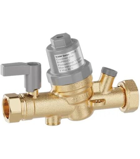 CODE ARTICLE : 539050H CARACTÉRISTIQUES TECHNIQUES Groupe combiné pour le contrôle de la pression des installations sanitaires Cartouche interchangeable Pour hautes températures Corps en alliage antidézincification LOW LEAD Vanne d'arrêt avec levier rallongé Clapet anti-retour type EA Pression amont max.16 bar Pression aval : 1-5,5 bar Tmax d'utilisation : 80 °C Prises de pression amont et aval G 1/4" Détendeur certifié EN 1567 Clapet anti-retour certifié EN 13959 PATENT PENDING CERTIFICATIONS MATÉRIAU Réducteur de pression Couvercle : PA6G30 (non résistant aux UV) Tige de commande : acier inoxydable EN 10088-3 (AISI 303) Ressort : acier EN 10270-1 Cartouche : PPSG40 Composants internes/pièces mobiles:PSU Membrane : EPDM Joints : EPDM Filtre : acier inoxydable EN 10088-2 (AISI 304) Bouchon de contrôle en amont : CW724R Bouchon de contrôle en aval : PA66G30 Clapet anti-retour Clapet anti-retour: POM Ressort anti-retour : acier inoxydable EN 10088-3 (AISI 303) Joint anti-retour : EPDM ...