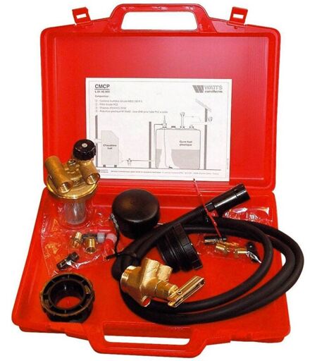 Présentation Modèle type CMCP kit bitube avec filtre. Livré dans une valise plastique comprenant : - 1 combiné multibloc spécial cuve plastique MBO 200R, - 1 chapeau d'évent C25/32, - 1 filtre bitube RV2 avec : corps laiton, raccords et réductions inclus pour tubes Ø ext. 8 - 10 - 12 mm, débit 400 L/h. - 1 réduction plastique M 50 x 60 - Lisse Ø 40 pour tube PVC à coller. ...