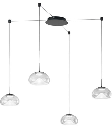 Brena - Suspension transparente décentralisée 4 lumières Fabas Luce - led 40W dimmable - Montage décentralisé