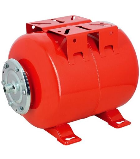 Meilleur rapport qualité-prix dans la catégorie des réservoirs à vessie ! Vessie qualité alimentaire - À monter sur groupe de surpression - Réservoir de 50 L Caractéristiques techniques : Position : Horizontal Avec bride inox : Non Capacité : 50 litres Diamètre : 380 mm Hauteur : 410 mm Type de raccordement : Mâle Diamètre raccordement : 1'' Raccordement pressostat : Oui Type de membrane : Butyle Pression max. : 10 bars Pression de pré-gonflage : 2 bars Peinture : époxy rouge Inclus dans le colis : Un réservoir à vessie de 50L Horizontal Les réservoirs à vessie ne sont pas compatibles avec des eaux filtrées telles que celles sortant d'un osmoseur par exemple. Garantie : 5 ans La garantie de 5 ans ne concerne que la cuve, les brides et contre/brides sont quant à elles garanties 2 ans et la vessie 1 an. ...