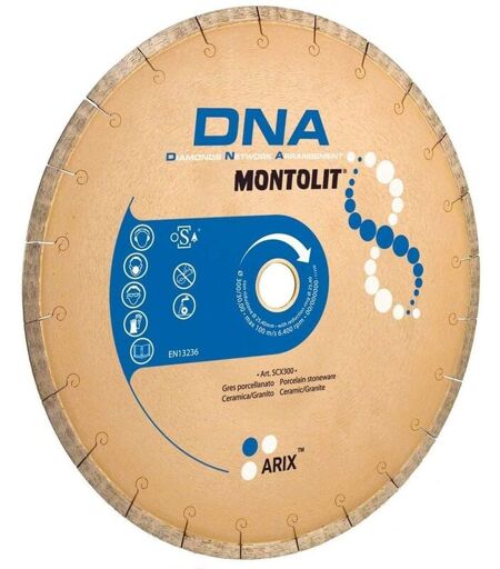 DISQUE DE DIAMANT 300 MM POUR GRÈS VITRIFIÉ CÉRAMIQUE GRANIT MONTOLIT DNA SCX300 Utilisation: utilisation humide Diamant de la bande de hauteur: standard Matériel: céramique ""pro"", grès cérame, granit Application: Pose de carreaux et dalles de marbre Performance: Vitesse: haute Terminer: bon Durée de vie: très élevé Utilisation: coupe-carreaux à usiner humide, scie à table I I DNA est une technologie innovante qui consiste en une ""distribution particulière en réseau tridimensionnelle contrôlée"" des granulés de diamant contenus à l'intérieur de la partie coupante des outils. Dans la pratique et plus simplement, cela signifie que les concepteurs, une fois la concentration idéale déterminée (quantité optimale de diamants dans les mélanges de poussières métalliques qui seront ensuite soumises à un frittage) pourront ensuite ""disposer"" chaque grain de diamant au plaisir et selon les besoins. Avant l'avènement de cette technologie, la disposition des granulés se faisait au hasard et ...