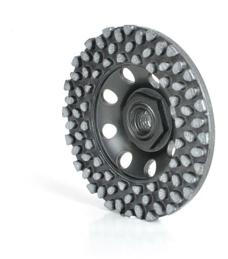 Meule diamantée sinterisée avec corps en polymère ultra-léger Utilisation : sèche ou humide Matériaux : grès cérame Applications : dégrossissage et décapage sur des matériaux compacts tels que la pierre, le béton, le grès cérame et en général pour les matériaux de construction les plus courants. Matériel : meuleuse d'angle/flexible (surtout meuleuses sans fil). Le corps en polymère ultra-léger rend cette meule diamantée optimale pour être installée même sur des meuleuses sans fil. Connexion : M14 Diamètre 100 mm Poids: 144 gr ...