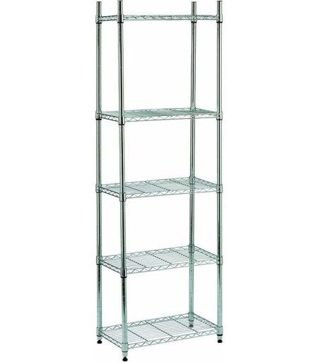 Étagère chromée 5 Étagères - en kit, produit à assembler Dimensions du produit : 60x35x180h cm Matériau : métal chromé Diamètre du mât : 25 mm ; Capacité de charge maximale par tablette : 75 kg Nombre de pièces par emballage : 1 pièce ; Taille de l'emballage : 61x21,5x36 cm ...