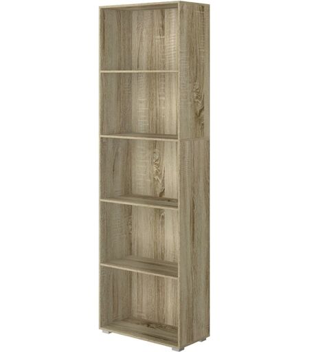 Bibliothèque en chêne 5 compartiments Pieds argentés Produit à assembler en MDF de 15 mm pour une utilisation intérieure. 60x30x195 H cm ...