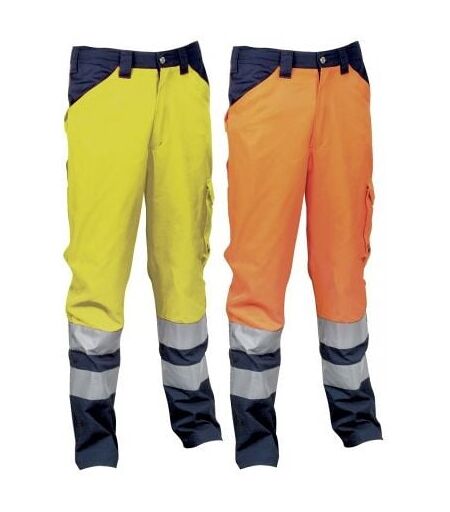 Pantalon de travail haute visibilité COFRA - Série HIGH VISIBILITY, Modèle ENCKE - S / XXXXL La ligne Haute visibilité offre des produits pour les applications où il est obligatoire d'être clairement visible pour protéger contre les accidents dus à une mauvaise visibilité: les leaders de la série sont certifiés EN 471 et équipés de bandes réfléchissantes en matériau réfléchissant 3M ™ Scotchlite ™. Ils peuvent être à la fois rembourrés (protection contre les intempéries et / ou idéaux pour travailler dans des environnements froids) et non rembourrés (disponibles en deux versions de poids pour répondre aux différences climatiques et plus de confort et de respirabilité. Le modèle Encke est un pantalon d' été non rembourré en tissu de couleur fluorescente conforme à la législation de haute visibilité UNI EN 471: 2008 avec de hautes performances en termes de solidité des couleurs au lavage, à la transpiration et au frottement. ...
