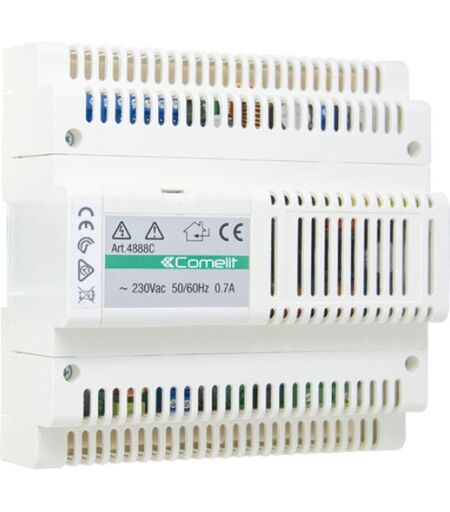 Alimentation pour systèmes audio ou audio/vidéo équipée d'une entrée compatible avec tous les boutons de commande d’extérieur avec technologie SimpleBus 1 et de 4 sorties pour la connexion de 100 appareils chacun à choisir parmi les interphones et les vidéophones avec technologie SimpleBus 2. Il est équipé de LED pour signaler les courts-circuits sur les lignes et d'une sortie de tension continue pour alimenter des dispositifs supplémentaires tels que les interrupteurs Art. 1224A, 1424 et/ou le relais d'actionnement Art. 1256. Il permet des fonctions d'intercom entre les utilisateurs. Equipé de 4 terminaux pour la terminaison de ligne art. 1216. Equipé de terminaux de terminaison de ligne 4 art. 1216 Système SIMPLEBUS2 Caractéristiques : Dimensions : Hauteur (mm) 67 Largeur (mm) 140 Profondeur (mm) 140 Température de fonctionnement (°C) -5 ÷ 40 Système audio/vidéo Simplebus 2 Absorption maximale de courant (mA) 700 Modules DIN (n°) 8 Montage sur rail DIN Oui Typologie : Alimentateurs ...