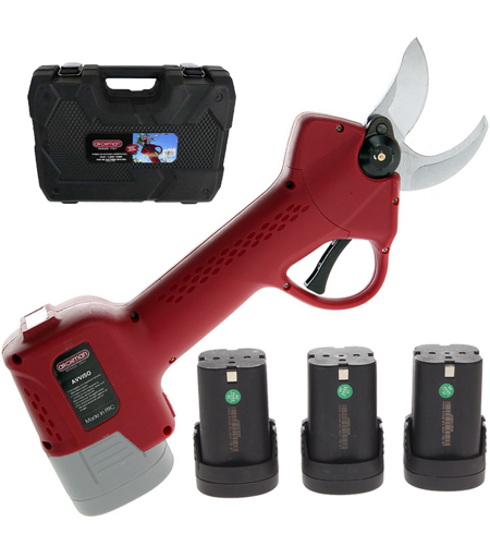 Poids sécateur 700g, Pays de fabrication Chine, Batterie incorporée, Utilisation manuelle, Équipement avec batterie, Type de moteur à batterie, Type de batterie lithium (Li-Ion), Voltage 16.8V, Ampères batterie 4Ah, Indicateur batterie, Nombre de batteries 3, Voltage nominal 16.8V, Ampères disponibles 4Ah, 360, Ø Branche - Max 35mm, No. Ouvertures de lame 2, Coupe progressive, Bypass, Type d'Electronique Intégrée sur le sécateur, Étui pour sécateurs, Malette ...
