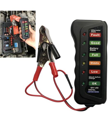 MEMKEY Testeur de Batterie 12V 6 Voyants led Testeur Batterie Voiture Alternateur 12v Analyseur de Batterie pour Auto Moto