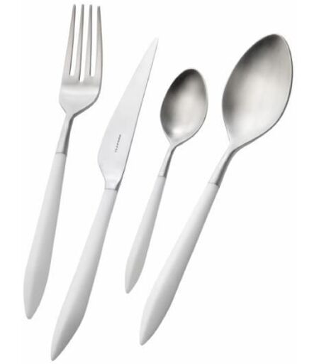 "Coffret de 24 modèles Ares, couleur de la poignée blanche emballé dans une boîte lithographiée compacte. L'ensemble de 24 pièces comprend: 6 cuillères à soupe 6 fourchettes de table 6 couteaux de table 6 cuillères à café Mesures: 27X19X10 cm Matér ...