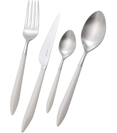 "Set de 24 modèles Ares, couleur de la poignée blanche emballé dans une boîte lithographiée avec fenêtre. L'ensemble de 24 pièces comprend: 6 cuillères à soupe 6 fourchettes de table 6 couteaux de table 6 cuillères à café La couleur a une couleur un ...