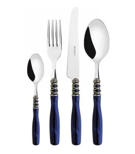 Composé de la vieille couronne tissée d'argent, inspirée du célèbre fil Arianna dont il prend son nom, et par l'élégante poignée de couleur bleue en acrylique perle avec des veines différentes, la ligne de couverts arianna Ghiera Brunita est parfait pour rendre votre particulier et soigné pour la mise en place. L'ergonomie particulière de la poignée et l'équilibre parfait couverts garantir une expérience agréable et la manipulation de l'utilisation. Fait en acier inoxydable 18/10. L'ensemble 24 pièces se compose de:6 cuillères à soupe6 fourchettes de table6 couteaux de table6 cuillères à café Matériau: Acier inoxydable 18/10 , Antique bague argent, Acrylique Finition: Couleur avec nacre effet Maintenance: Laver dans le lave-vaisselle à des températures moyennes et basses de 50 à 55° C dans les paniers appropriés pour couverts and drawer couverts. Chargez les couteaux séparément couverts, avec la lame orientée vers le bas. ...