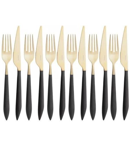 Ares Gold est la ligne couverts coloré par le charme éternel qui donne raffinement et style à votre table. L'acier inoxydable 18/10, strictement forgé et avec finition PVD en or, est combiné avec la poignée fine en résine brossé manuellement. Chaque détail de la ligne Ares est fait pour étonner et conquérir vos invités. Ils sont lave-vaisselle. Le Set 12 morceaux de fruit est composé de: 6 fourchettes de fruits 6 couteaux à fruits La couleur a une couleur solide et est mat Laver dans le lave-vaisselle à des températures moyennes et basses de 50 à 55° C dans les paniers appropriés pour couverts and drawer couverts. Chargez les couteaux séparément couverts, avec la lame orientée vers le bas. Lire les instructions jointes à la documentation ...