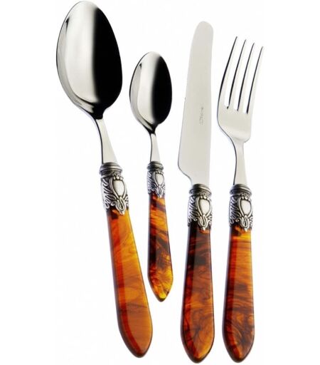 Bugatti Ensemble De Couverts 24 Pièces Modèle Oxford Emballé Dans Une Boîte Gallery, Couleur Du Manche Écaille Avec Finition Virole Brunie.