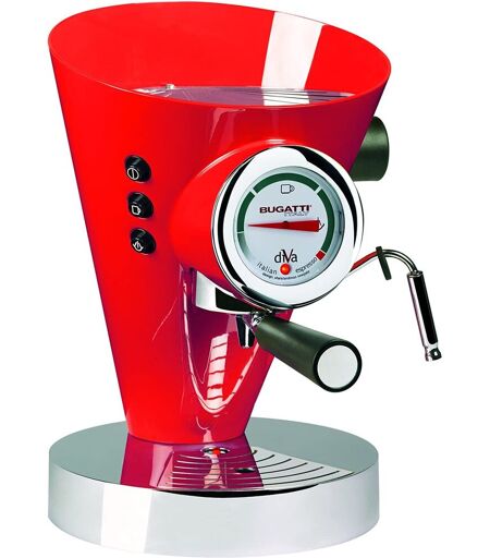 Bugatti, Diva, Machine À Café Expresso Et Cappuccino, Pour Café Moulu Et Dosettes, 15 Bar, 950 W, Capacité 0,8 Litre, Design Élégant, Couleur Rouge