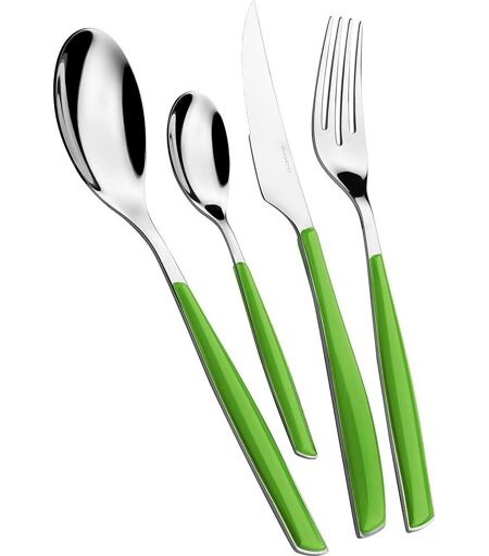 Bugatti, Glamour, Ensemble De Couverts 24 Pièces En Acier Inoxydable 18/10 Et Manche Foliage Green. Ensemble De Couverts 6 Personnes: 6 Cuillères, 6 Fourchettes, 6 Couteaux Et 6 Cuillères À Café