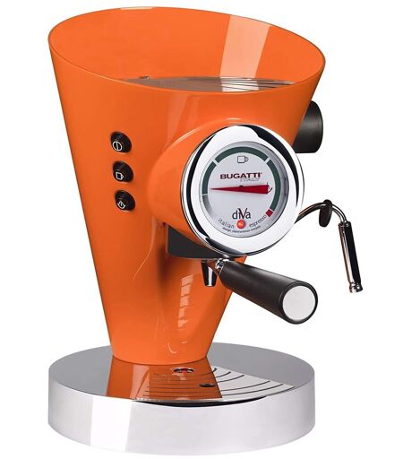 Bugatti, Diva, Machine À Café Expresso Et Cappuccino, Pour Café Moulu Et Dosettes, 15 Bar, 950 W, Capacité 0,8 Litre, Design Élégant, Couleur Orange