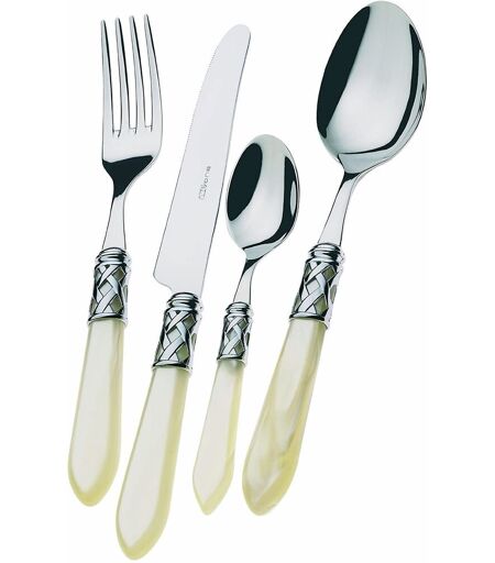Bugatti, Aladdin, Ménagère 24 Pièces En Acier Inoxydable 18/10, Anneau Chromé Et Manche Ivoire Effet Nacre. Set De Couverts 6 Personnes: 6 Cuillères, 6 Fourchettes, 6 Couteaux Et 6 Cuillères À Café
