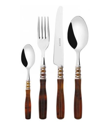 Composé de l'ancienne couronne tissée d'argent, inspirée du célèbre fil Arianna dont il prend son nom, et par l'élégante poignée colorée en acrylique perle avec des veines différentes, la ligne de couverts arianna Ghiera Brunita est parfait pour rendre votre particulier et soigné pour la mise en place. L'ergonomie particulière de la poignée et l'équilibre parfait couverts garantir une expérience agréable et la manipulation de l'utilisation. Fait en acier inoxydable 18/10. L'ensemble 24 pièces se compose de:6 cuillères à soupe6 fourchettes de table6 couteaux de table6 cuillères à café Matériau: Acier inoxydable 18/10 , Antique bague argent, Acrylique Finition: Couleur avec nacre effet Maintenance: Laver dans le lave-vaisselle à des températures moyennes et basses de 50 à 55° C dans les paniers appropriés pour couverts and drawer couverts. Chargez les couteaux séparément couverts, avec la lame orientée vers le bas. ...