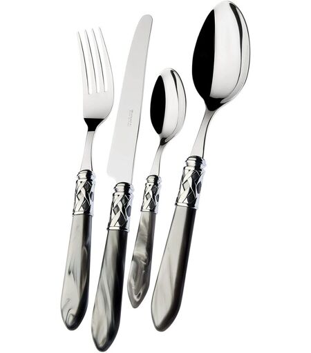 Bugatti, Aladdin, Set De 24 Couverts En Acier Inoxydable 18/10, Anneau Chromé Et Manche Gris Effet Nacre. Set De Couverts 6 Personnes: 6 Cuillères, 6 Fourchettes, 6 Couteaux Et 6 Cuillères À Café