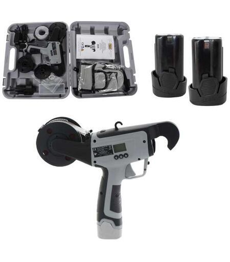 Pays de fabrication Chine, Équipement avec batterie, Batterie intégrée, Type de moteur à batterie, Puissance nominale (W) 40W, Type de batterie lithium (Li-Ion), Voltage 14.4V, Ampères batterie 2.0Ah, Nombre de batteries 2, 5 niveaux de réglage, Diamètre de ligature 25mm, Longueur bobine 90m, Ligature pour bobine 640, Nb. tours de liage 2-3-4-5-6, Poids 1.2kg ...