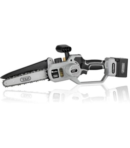 L' élagueuse à batterie Volpi KVS8000 est équipée d'un double interrupteur de sécurité, d'une chaîne de 1/4" avec couvercle de protection et d'un guide de 8", d'une poignée ergonomique avec protection des mains et d'une deuxième poignée supplémentaire pour le travail à deux mains : un équipement essentiel pour un travail en toute sécurité. La charge de la batterie et le nombre d'heures de travail peuvent être visualisés sur l'écran, de sorte que l'opération d'élagage est toujours sous contrôle. Réservoir d'huile intégré et niveau visible de l'extérieur, avec graissage automatique de la chaîne. Il est équipé de deux batteries sans fil lithium-ion 21,6V 4,0Ah rechargeables à connexion rapide. Il est également fourni avec un chargeur de batterie à trois voies, un kit de réparation, un couvercle de barre et une mallette pratique où tous les éléments peuvent être soigneusement rangés pour un transport facile et sûr. L'élagueuse Volpi est très légère, elle ne pèse que 1,6 kg sans batterie ! ...
