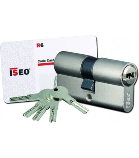 Cylindre ISEO ISR6 à 2 entrées - 5 Clés reversibles en laiton nickelés - 5 clés réversibles en laiton nickelé 6 goupilles Inox Contre-goupilles diabolo anti-crochetage Rotor bombé fraisé limitant les risques de cassure et de torsion Protection anti-perçage dans le stator : 1 goupille en acier traité Ø 1,8 mm Protection anti-arrachement Panneton DIN en acier fritté incliné à 30° Finition : nickelé mat Carte de réapprovisionnement Conforme à la Norme EN 1303:2005 Fabriqué en Italie - Produit expédié depuis notre plateforme située à Rodez en Aveyron - produit conforme aux normes françaises - ISR6 à 2 entrées ou à 2 entrées fonction “sécurité” pour serrure, verrou, module antipanique... Compatible avec le verrou ISR6 ...