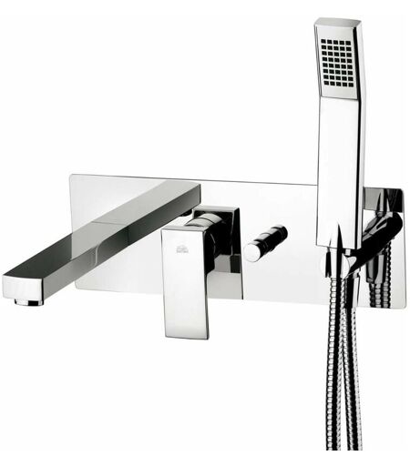 Mitigeur de baignoire encastré avec corps d’encastrement et ensemble de douche inverseur plaque murale en inox 350x120 mm bras avec mousseur M28x1 longueur du bras 209 mm douchette et flexible raccord G 1/2" finition chromée Le mitigeur comprend un corps de montage encastré. ...