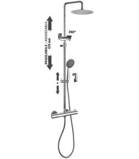 CODE ARTICLE : ZCOL589LIQCR CARACTÉRISTIQUES TECHNIQUES Typologie : Colonne de douche réglable Matériau : Métal Finition : Chromé Support coulissant rond ECO Douche GIADA en ABS Pomme de douche Bahamas ronde Ø230mm en métal Flexible métal 1500mm Avec mitigeur thermostatique LIQ169CR (avec inverseur) DIMENSIONS COLONNES DE DOUCHE PAFFONI ...