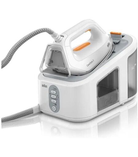 Découvrez la centrale vapeur Braun CareStyle 3 IS3132WH, puissante avec ses 2400 W et son réservoir amovible de 2 L pour un repassage efficace et prolongé. Sa semelle EloxalPlus assure une glisse optimale. Profitez d'une pression vapeur de 6 bars, d'un débit vapeur continu de 120 g/min et d'une fonction vapeur verticale. Système de verrouillage, arrêt automatique et nettoyage facile inclus. ...